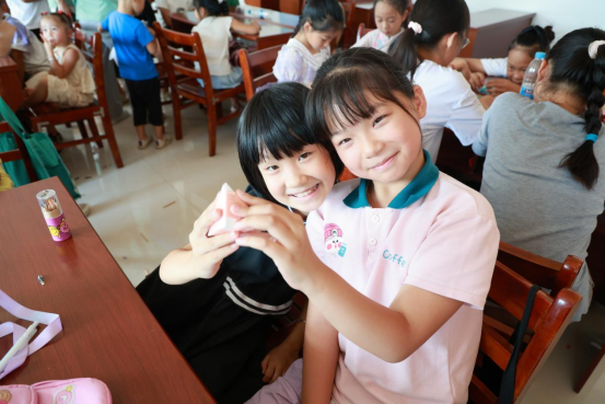 而曹武镇另一端的趣味公益课堂也在如火如荼进行着。书法课上,志愿者为孩子们讲解了我国文字的发展历程,带领孩子们学写毛笔字,领略书法魅力。科学课上,志愿者带领孩子自制VR眼镜,体验虚拟世界;绘画课上,孩子们绘画简易青花瓷图案,领略中国传统文化之美;手工课上,志愿者们与孩子们一起制作香囊,感受手工制作的魅力。在公益课程后,志愿者为孩子们进行了作业辅导,解决日常学业中的困难。