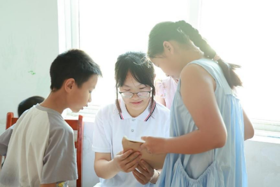 在曹武村的文化活动室内,志愿者给小朋友们带来了一堂精彩有趣的课程——魔方故事会,用小小的魔方投掷出不同的选项,拼凑而成的一个个奇妙的故事,给孩子们带来了无穷的乐趣。课间活动,志愿者与孩子们玩耍,一起拼拼图,在小游戏中与孩子们交心,成为了真正的朋友。
